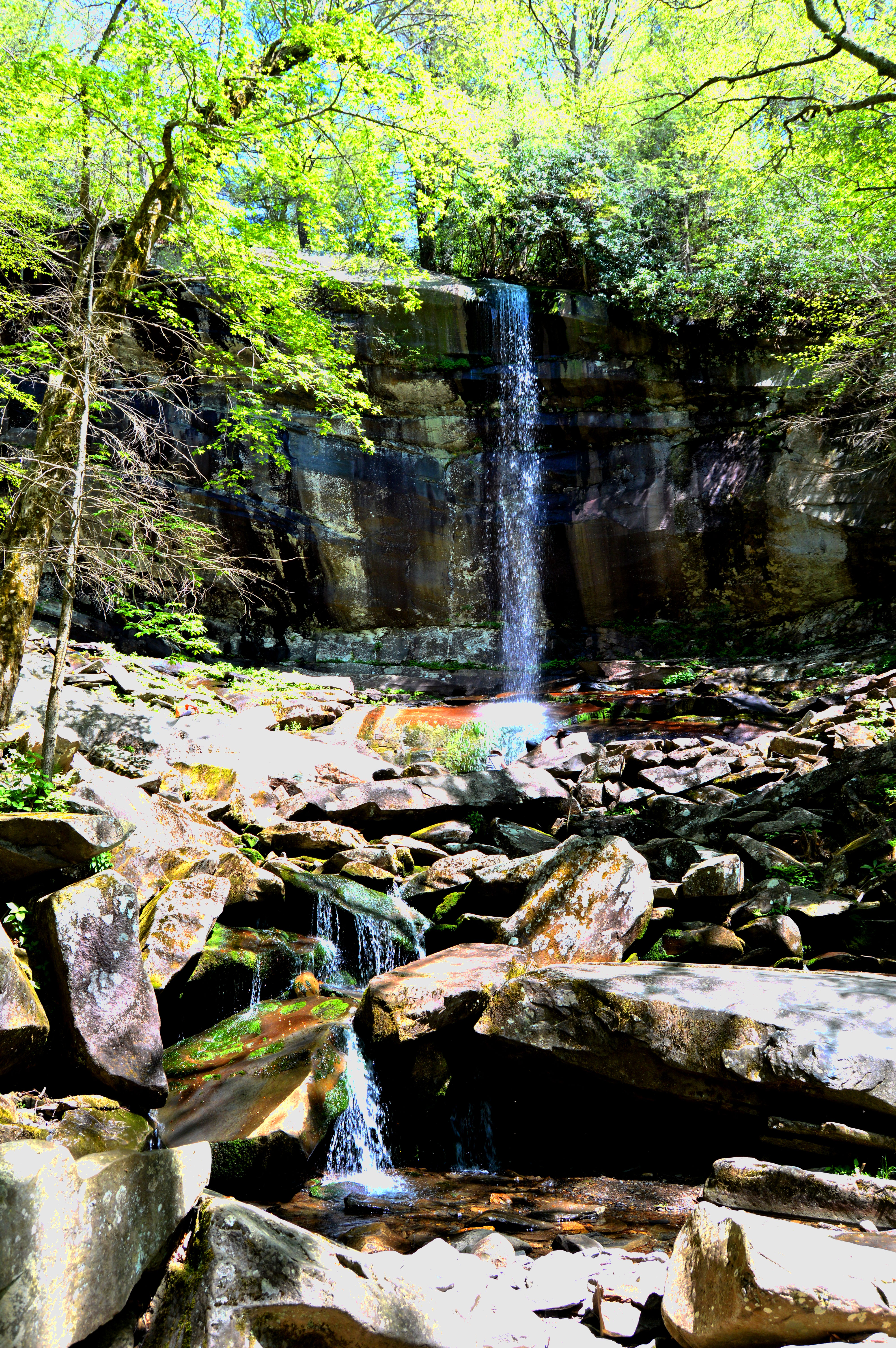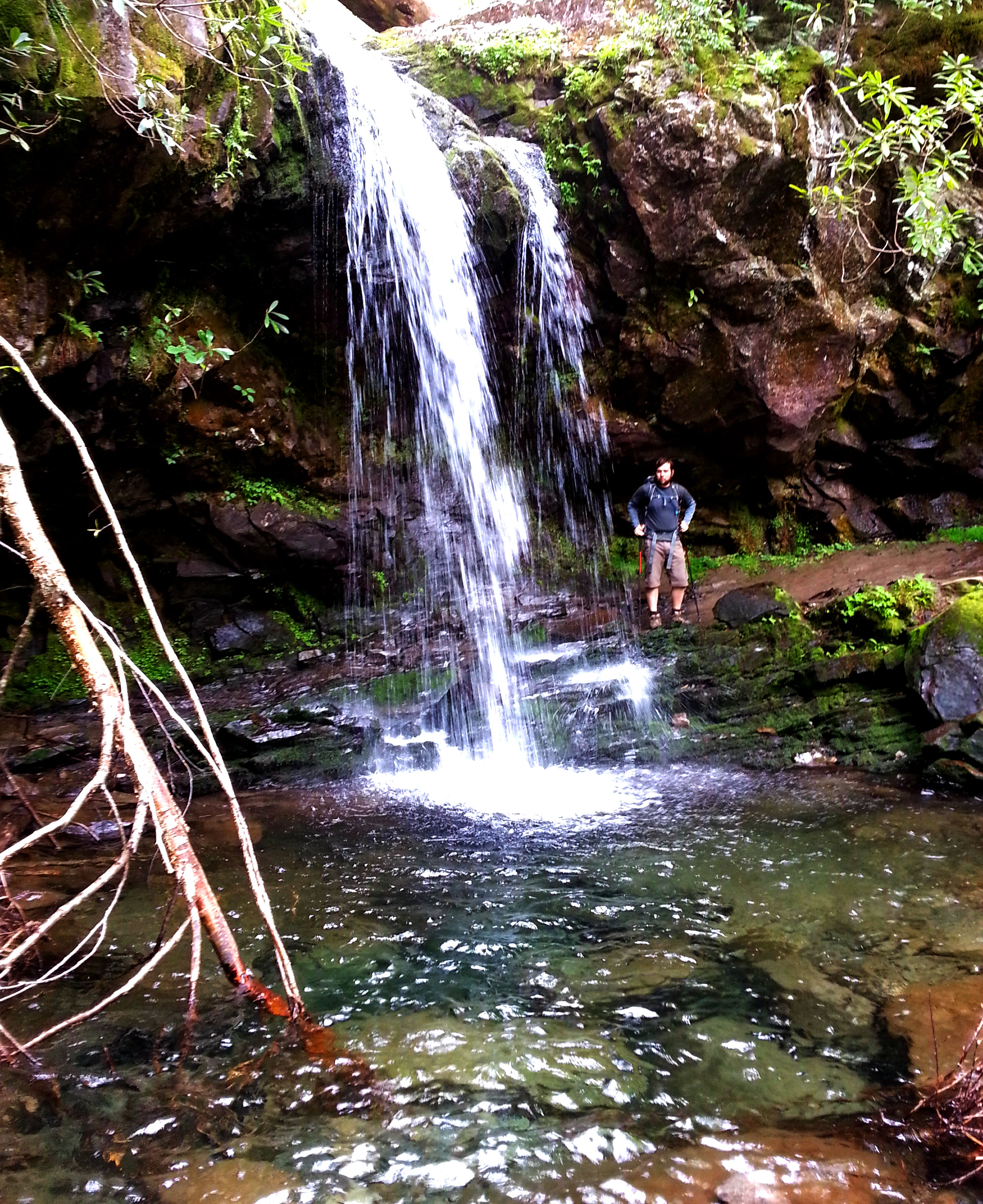 After breakfast our paths diverged and our group went separate ways. James and I followed the Trillium Gap Trail, which is used three times a week by llamas to transport supplies to the LeConte Lodge. Unfortunately, we only encountered their tracks and droppings along the way. Towards the end of our route, the trail led us behind the 25-foot Grotto waterfall, which refreshed us with its cooling water mist on our faces. We enjoyed our break in front the waterfall and nourished our bodies with fruit pouches before we carried on with our hike back to the car.