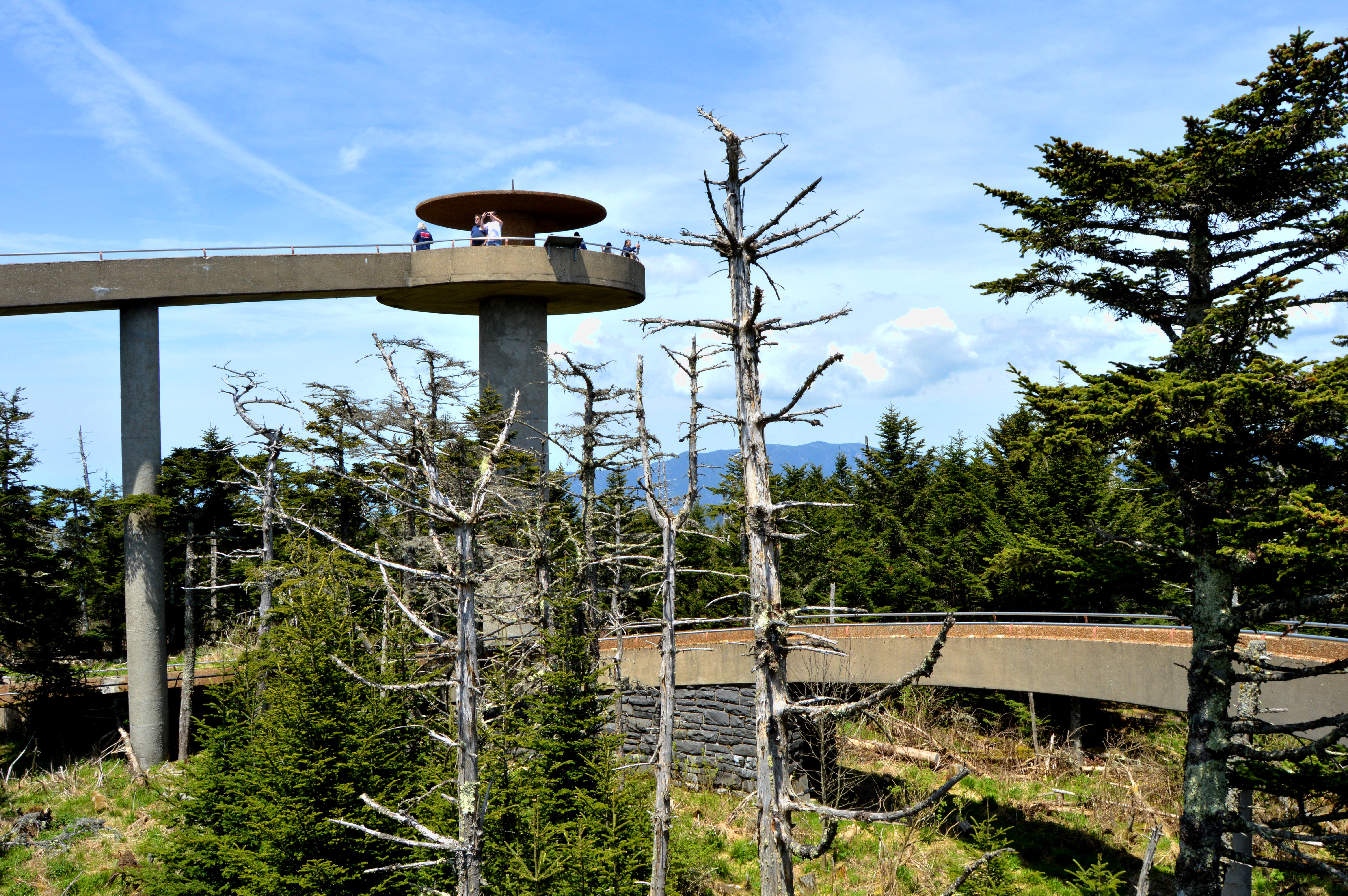 Since James and I are always up for a more adventure, we continued our day by parking our car at the Clingmans Dome parking lot for another overnight hike that evening. Before heading down the Forney Ridge Trail towards campsite #68, we tackled the short hike to the top of Clingmans Dome. As we hiked up the paved trail for a half mile, we passed many huffing and puffing tourists before we reached the observation tower. The entire way up and especially at the top of the observation tower, James and I wanted to get away from the tourists as soon as possible. Something about being able to drive to the top of a mountain removes the excitement of the view. Tired from our busy morning, James and I decided to take a quick nap in the shade of a pine tree before we continued toward our campsite.